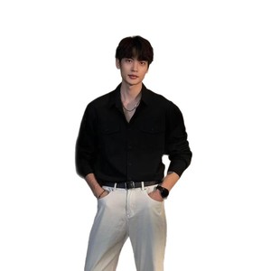 秋季新款工装衬衫口袋设计男士宽松高级休闲衬衣长袖翻领外套上衣