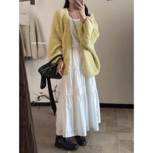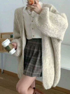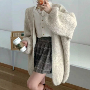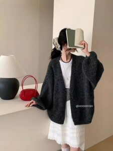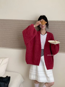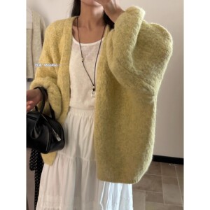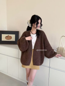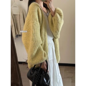 2025纯色多巴胺慵懒舒适百搭针织衫宽松毛边保暖毛衣外套女