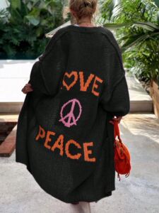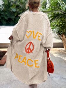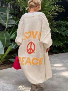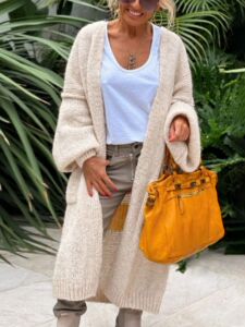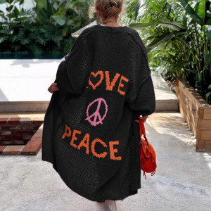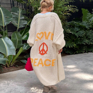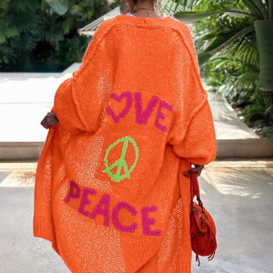 长袖女装秋冬针织毛衣宽松舒适休闲长款橙色毛衣开衫针织衫