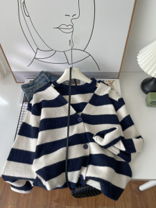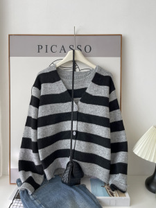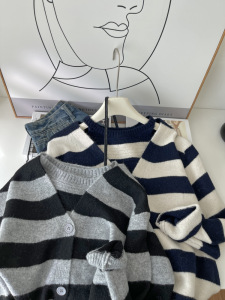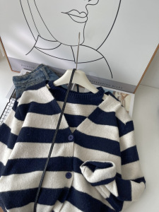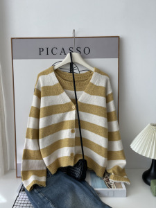 时尚休闲条纹长袖针织衫女秋装2025秋季新款背心女士开衫上衣6263