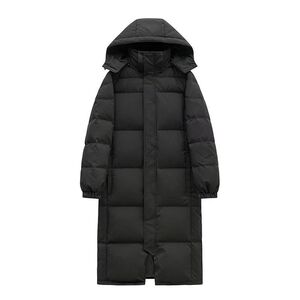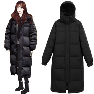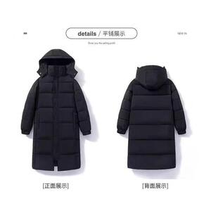 中戏艺考黑色简约羽绒棉服超长过膝款2025大码男女情侣款加厚外套