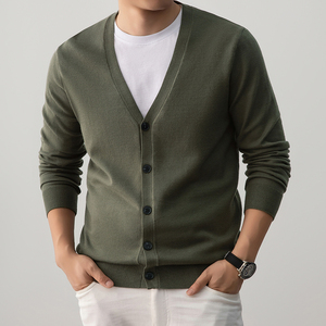 秋冬V领针织开衫男宽松休闲毛衣外套纯色百搭韩版百搭潮流一件代