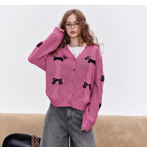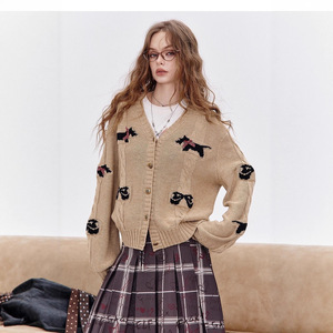妖精的 复古小狗针织开衫女2025年秋季穿搭新款学院风外套上衣