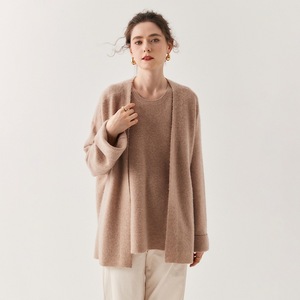 软糯山羊绒新款秋冬女新款经典百搭中长款毛衣外套宽松慵懒针织衫