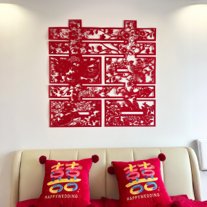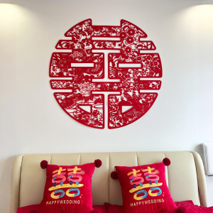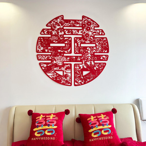 结婚喜字贴无纺布婚房装饰囍字墙贴拍照背景墙布艺大喜字贴婚礼用
