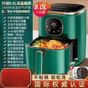 【顶配液晶触屏/绿8.0L】1400W大火力+进口芯片+无油不粘锅内胆+8大升级功能