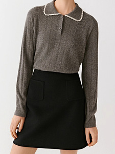 小禾女装2025秋季新款之通勤简约羊毛纯色长袖POLO领套头针织衫