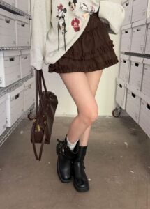 ME KAKAMEE十三行秋甜美压褶层次感蛋糕短裙半身裙(有安全裤) 791