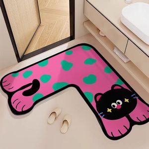 蓝色小狗L形浴室地垫硅藻泥吸水脚垫吸油脚垫速干地垫厕所易清洗