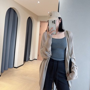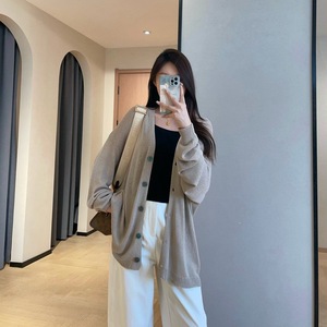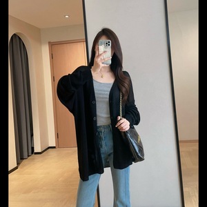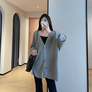 慵懒气质! 25秋季宽松百搭显瘦落肩V领中长款轻薄针织开衫外套女