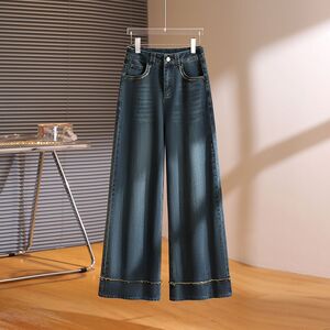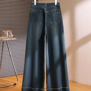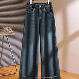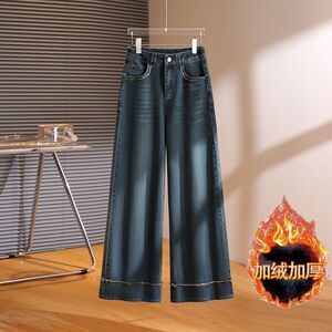 2025年秋冬加绒牛仔裤女新款厚款阔腿牛仔裤高腰宽松毛边直筒长裤