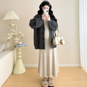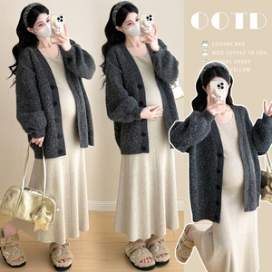孕妇秋冬新款韩系宽松开衫毛衣外套修身显瘦针织连衣裙甜美两件套
