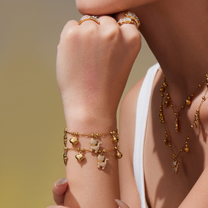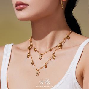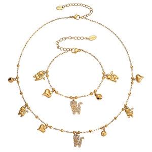 方糖 超闪5A锆石小猫铃铛吊坠 DIY多配件项链手链 不锈钢首饰套装