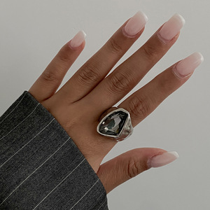 欧美跨境时尚轻奢亚克力钻戒指套装 设计感几何金属方形指环Rings