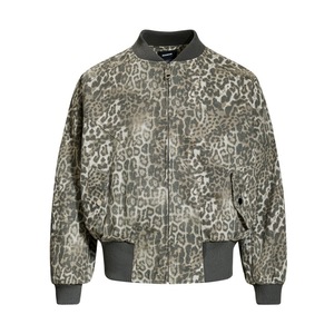 欧美复古豹纹牛仔棒球服夹克秋冬男装街潮朋克水洗宽松休闲外套