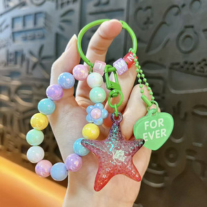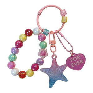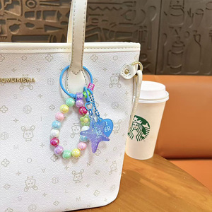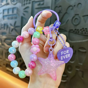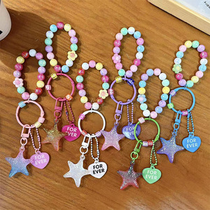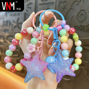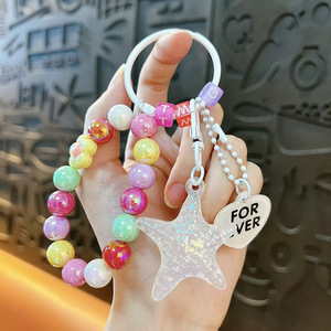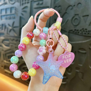 创意亚克力渐变五角星串珠钥匙扣可爱包包挂件汽车钥匙链礼品批发