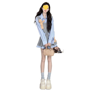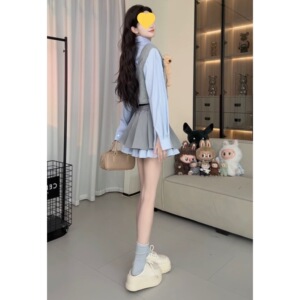衬衫马甲假两件+半身裙