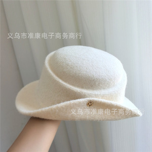 复古折边2025赫本风羊毛千金帽子女款秋冬氛围英伦礼帽高级感礼帽