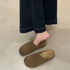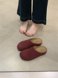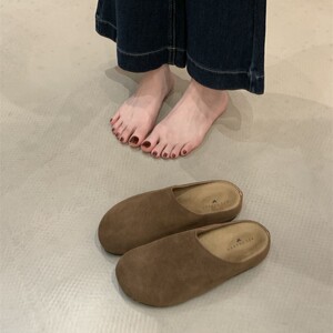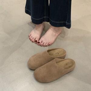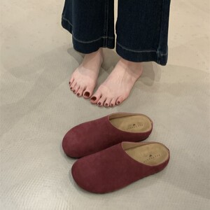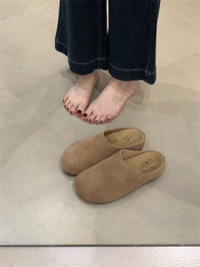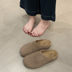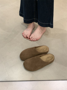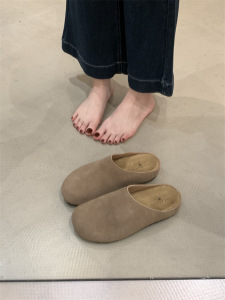 厚底勃肯半拖鞋女外穿2025秋软底磨砂懒人一脚蹬穆勒拖鞋复古