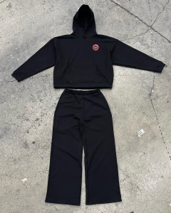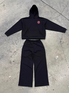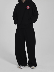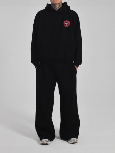 25冬季新款刺绣徽章男士连帽衫卫衣加绒加厚套头休闲卫衣套装