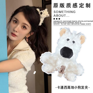 杨幂同款白色毛茸茸小狗发夹卡通大号刘海发夹可爱毛绒鸭嘴夹头饰