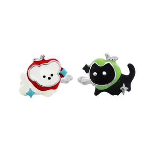 青苹果耳钉女小众设计甜美可爱卡通不对称精致百搭耳环无耳洞耳夹