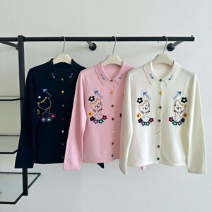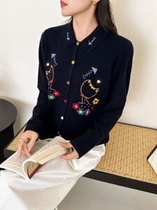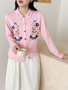 羊毛衫韩系翻领针织开衫秋冬大衣针织打底衫开衫外套上衣卡通毛衣