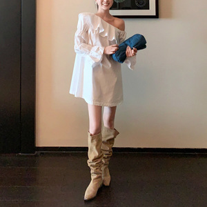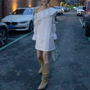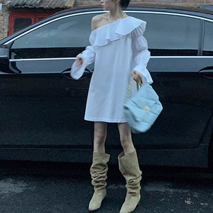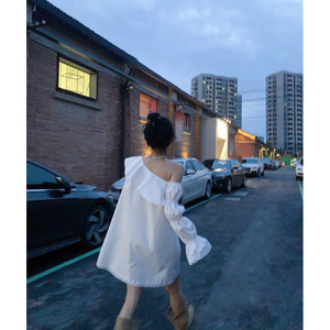 MENGXIANG ▏复活款两年前的落肩连衣裙不规则设计简约美感裙早秋