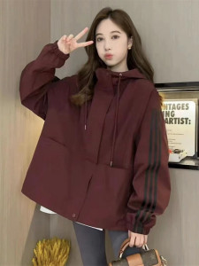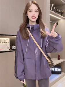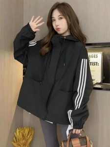 时尚潮流设计感连帽外套女2025春秋季新款宽松休闲防风百搭冲锋衣