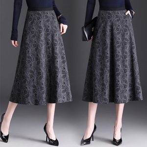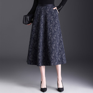 复古印花a字裙半身裙女2025秋冬新款高腰显瘦中长款百褶伞裙垂感