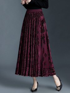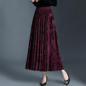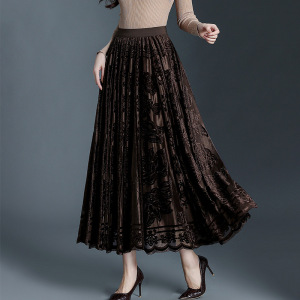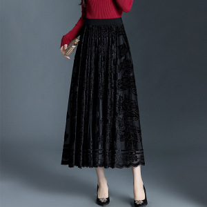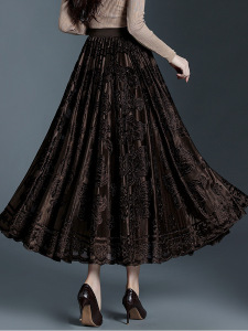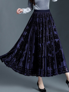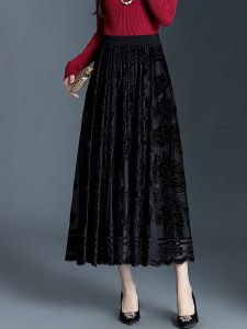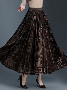 垂坠感植绒蕾丝大摆半身裙2025秋季新款两面穿遮胯百褶裙高腰丝绒