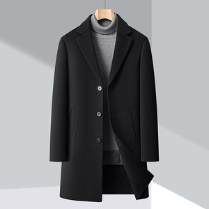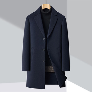 冬季羊毛呢大衣男羽绒内胆中长款中年爸爸装休闲双面呢子风衣外套