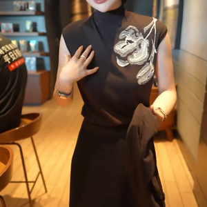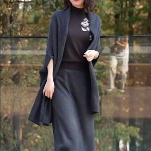 【两件套】秋冬爆款气质高级感轻奢中长披肩立领提花背心X83+X181