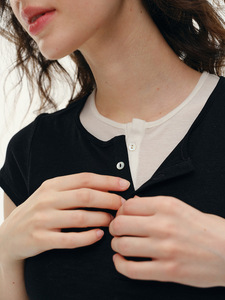 桃子 亨利领假两件短袖T恤显瘦正肩上衣女夏季2025新