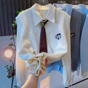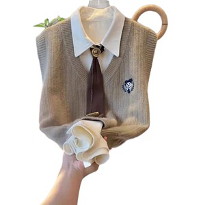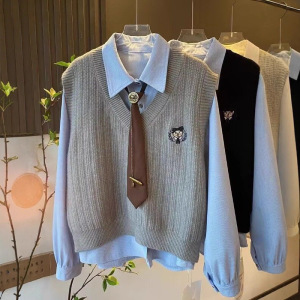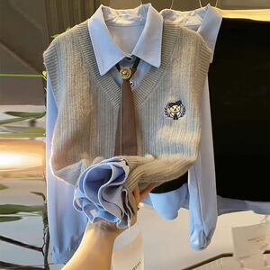 高级感盐系学院风秋冬搭配一整套衬衫马甲两件套装女春秋穿搭2025