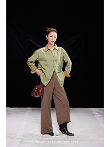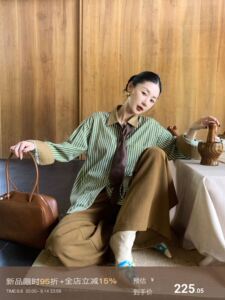 鹭青一【雨山9.08 20:00 新品】印花竖条纹复古棉感宽松衬衫女秋