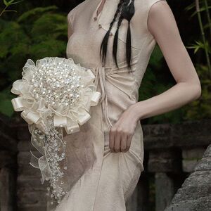 珍珠新娘手捧花闺蜜结婚礼物婚纱影楼拍照道具高级手工材料包跨境