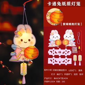 中秋节古风可爱新款发光灯笼兔子花灯diy创意手工手提灯中国风批