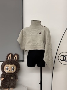 高品质~早秋氛围感斗篷披肩针织衫女新款慵懒风独特漂亮短款上衣