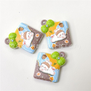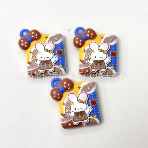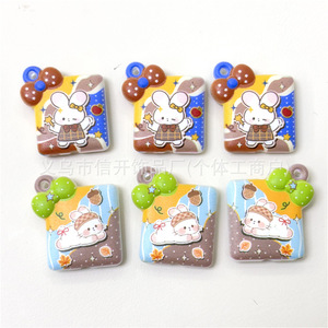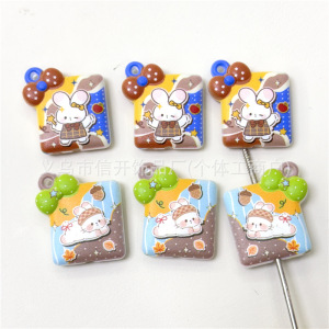 通孔吊孔两用兔子印花画板串珠笔配件 手机钥匙链diy手工饰品材料