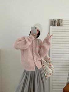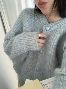 十三行韩版减龄显瘦圆领针织开衫女秋季爱心扣软糯毛衣外套上衣