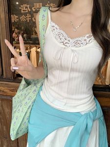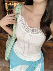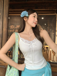 白色系带蕾丝花边吊带背心女2025年夏季新款小众设计感内搭上衣