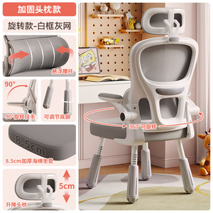 【升降头枕款】-白框灰网-升降头枕-8.5cm加厚海绵坐垫-90°旋转扶手-可调节底脚