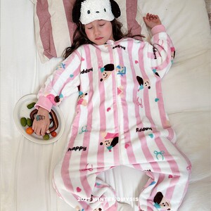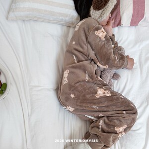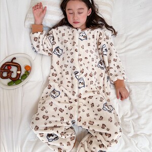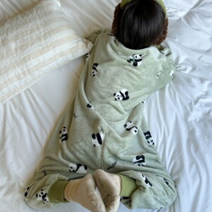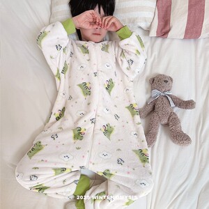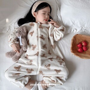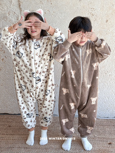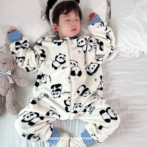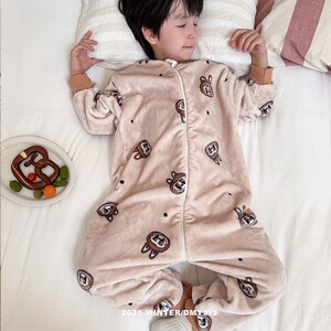 儿童连体睡衣秋冬法兰绒加绒加厚男女童宝宝珊瑚绒家居服防踢睡袋