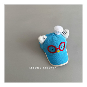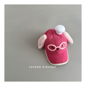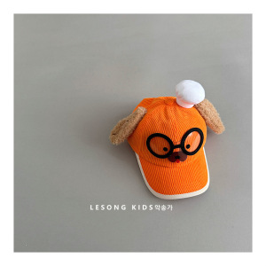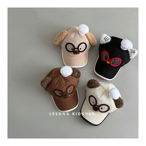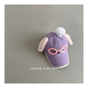 儿童可爱眼镜小狗棒球帽春秋亲子款毛绒耳朵呆萌休闲百搭鸭舌帽潮