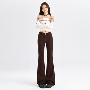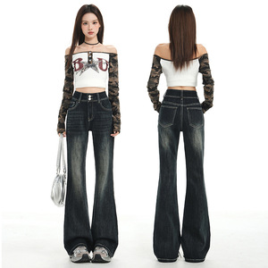 蓝灰色高腰微喇牛仔裤女2025秋季新款小个子弹力显瘦修身喇叭裤子