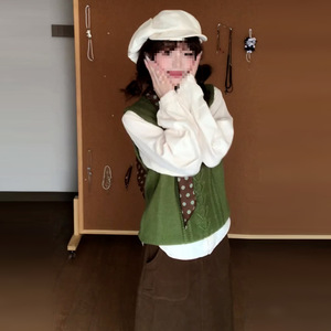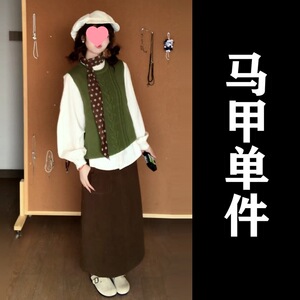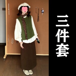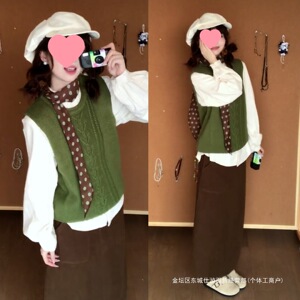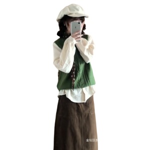 绿色马甲+衬衫+半裙【三件套】