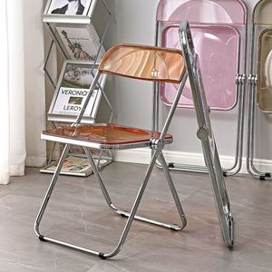 网红透明椅子拍照折叠椅简约化妆亚克力靠背家用凳子餐椅加厚批发