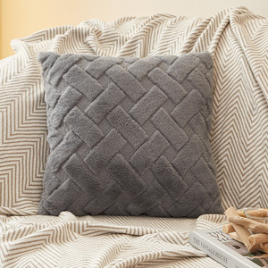 亚马逊热销毛绒抱枕套不含芯卧室沙发抱枕跨境办公室纯色靠枕靠背