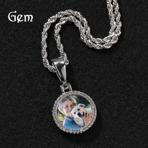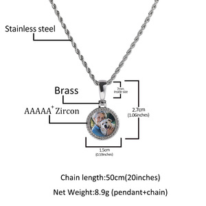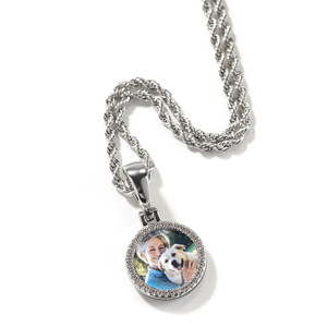 创意新款微镶锆石迷你圆形记忆相框吊坠欧美潮流DIY彩印照片项链